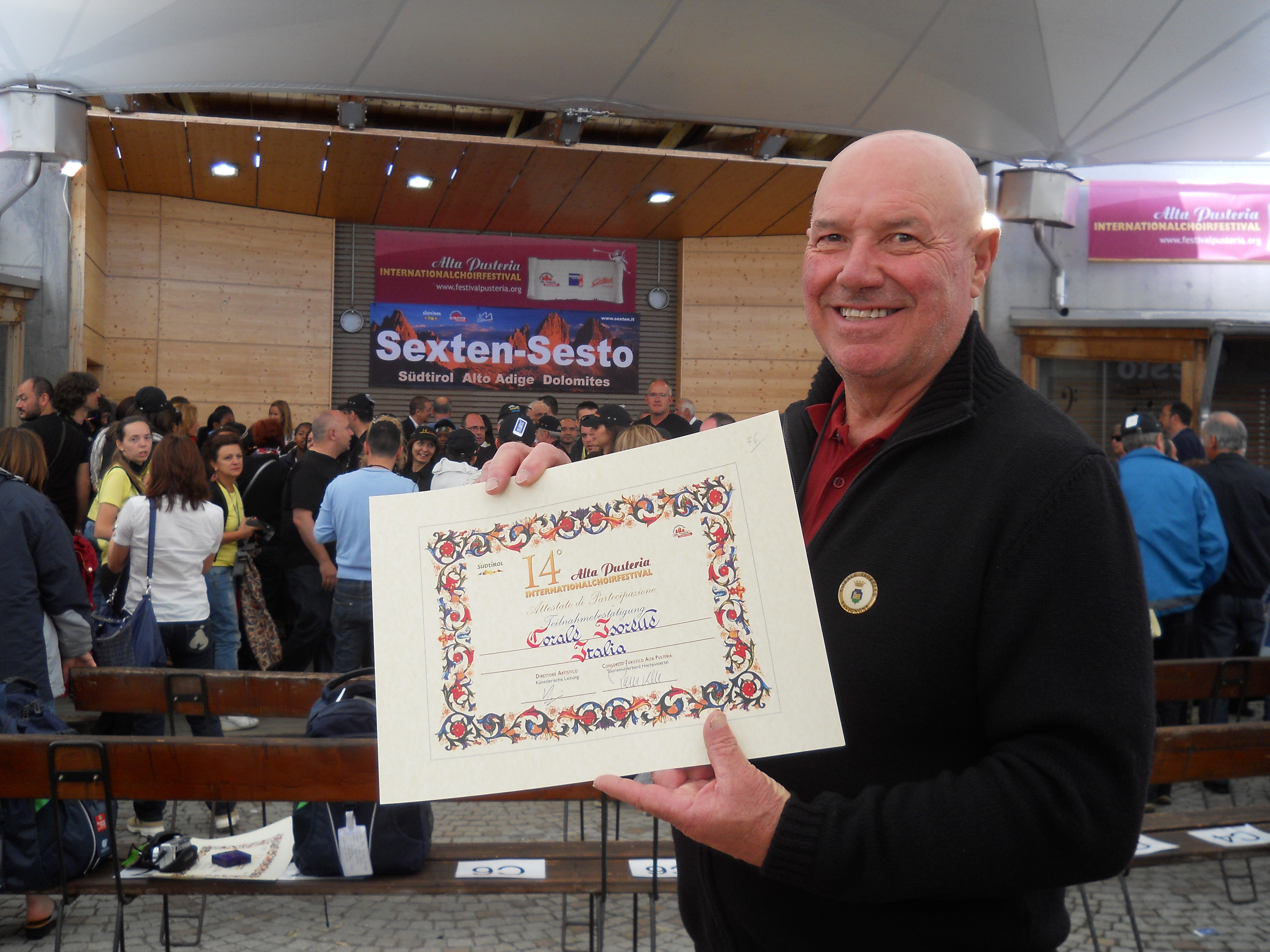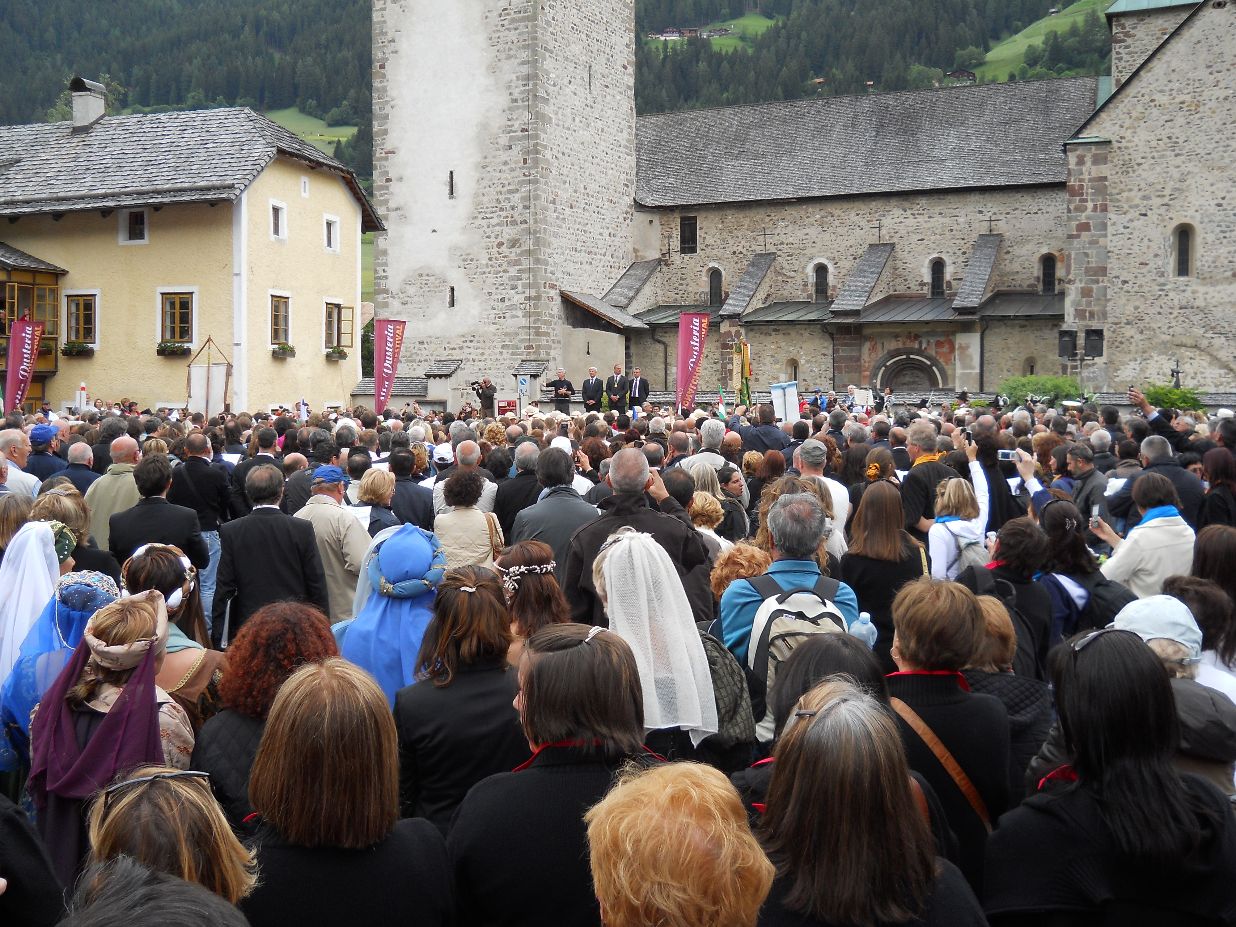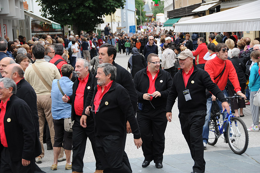 la piazza di san candido con migliaia di coristi per cantare va pensiero