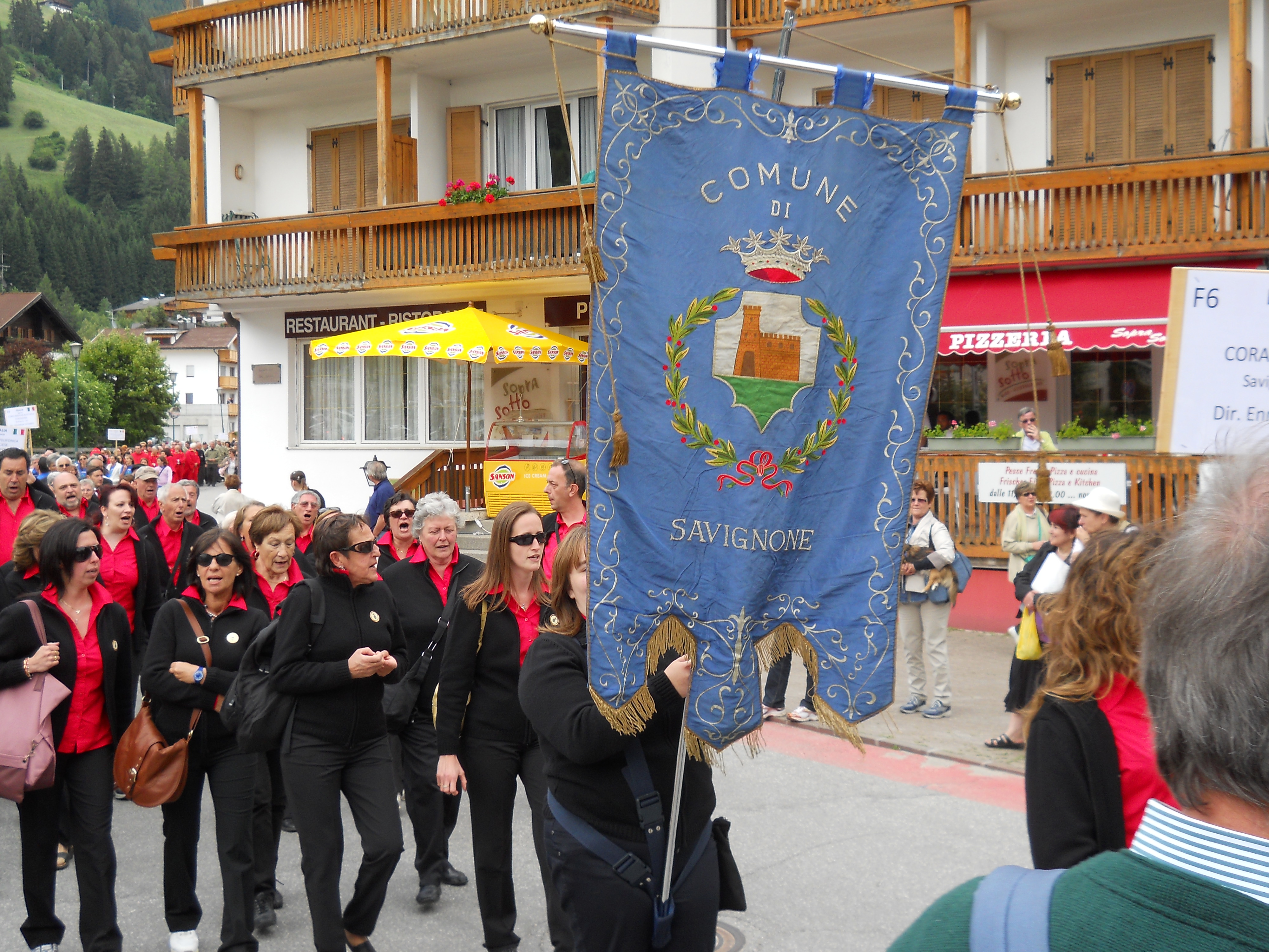 in sfilata a san candido con il gonfalone del nostro comune